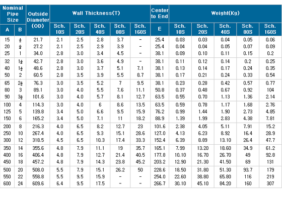 Sch10S, Sch20S, Sch40S, Sch80S, Sch160S